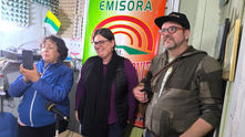 Edwin Sandoval, Esmeralda Quevedo y Eliécer Pinto, reporteros - talleristas del proyecto Voces y Susurros de los Páramos.